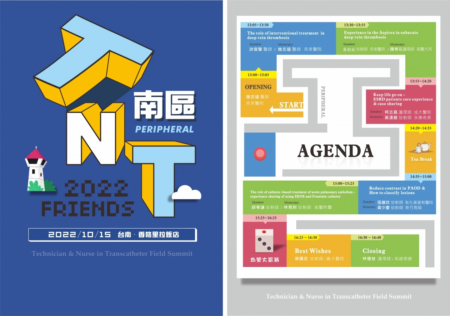 我們也為了技護人員舉辦了相關的課程,會議後的互動環節,透過遊戲化的方式來加深學習、結合會議中醫學相關的問題、案例分析等挑戰,參加者需要通過解答問題、完成任務方式來闖過關卡! 今年TNT也來到了『第14屆』,依然是滿滿的知識引爆點,感謝您的參與! 2022/10/15 Pm13:00 - Pm16:40 台南 香格里拉飯店